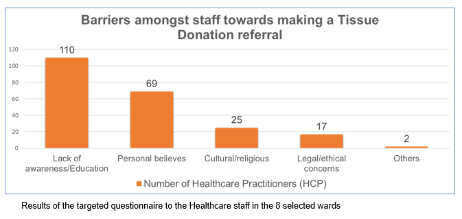 The data showed a mismatch between high-mortality wards and those with high donation potential. The eight selected wards accounted for 49.2% of missed referrals. Staff responses revealed key barriers: fear of upsetting families (67%), uncertainty about eligibility (59%), time constraints (45%), and lack of feedback or closure after a referral.