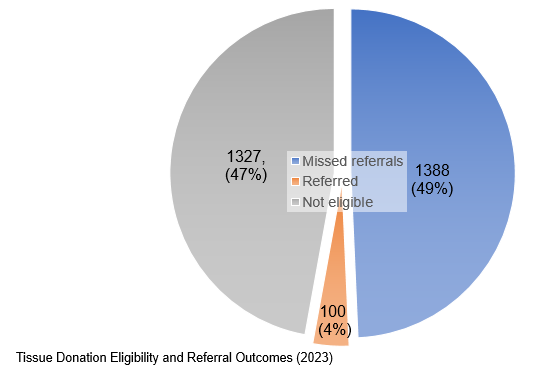Results: Of the 1,488 patients qualifying for referral for Tissue Donation, 408 were registered organ donors.