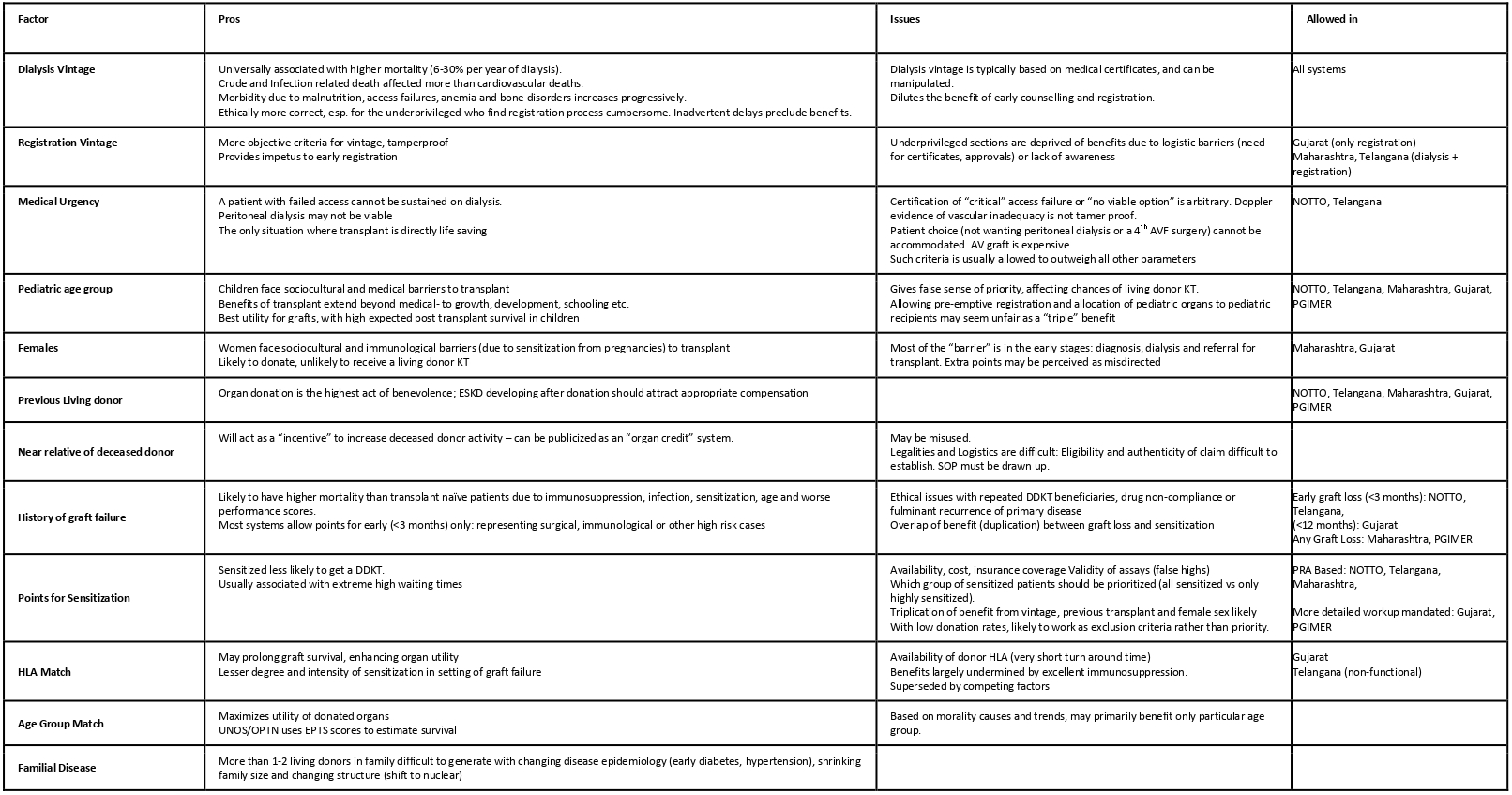 Table 1. Standard parameters used in the deceased donor kidney allocation systems: Pros and Cons