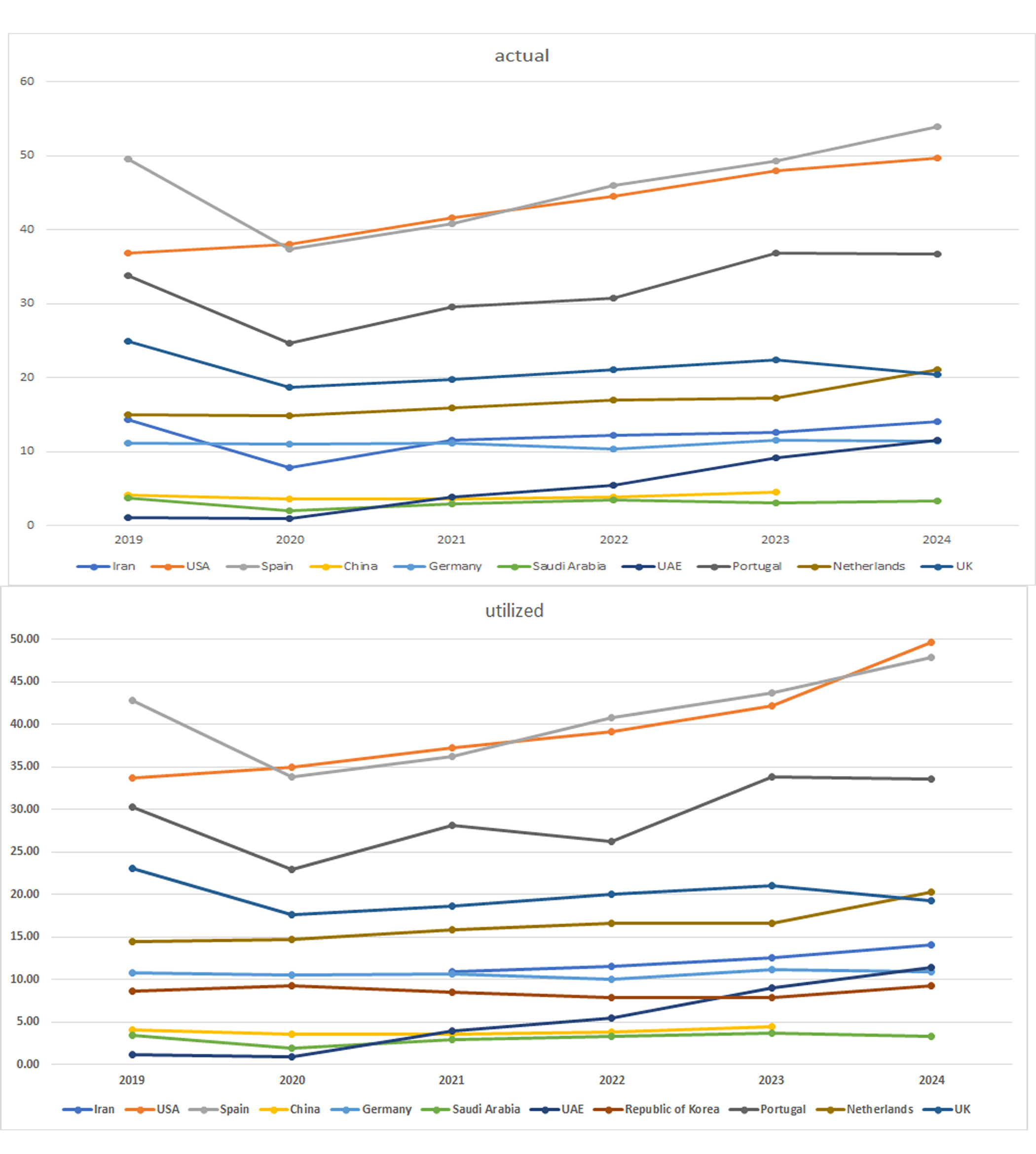According to Figure 1, the rates of actual donors and utilized donors were examined and compared across various countries within the 2019-2024 timeframe.