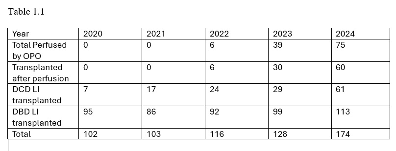 Results: Since implementing NMP with the OrganOx metra device in mid-2022, this OPO has achieved record-breaking increases in liver utilization, particularly for donation after circulatory death (DCD) grafts. Over two years, the number of NMP-perfused livers transplanted grew from 6 in 2022 to 60 in 2024 (Table 1.1), contributing to a substantial rise in overall liver transplant volumes. While liver organ acquisition costs (OAC) increased, spreading these costs across all organs resulted in a per-organ perfused and transplanted cost savings of approximately 50% compared to third-party NMP services. Additionally, the OPO partnered with the device manufacturer to establish a shared-risk model, ensuring that non-transplanted livers did not impose financial losses.