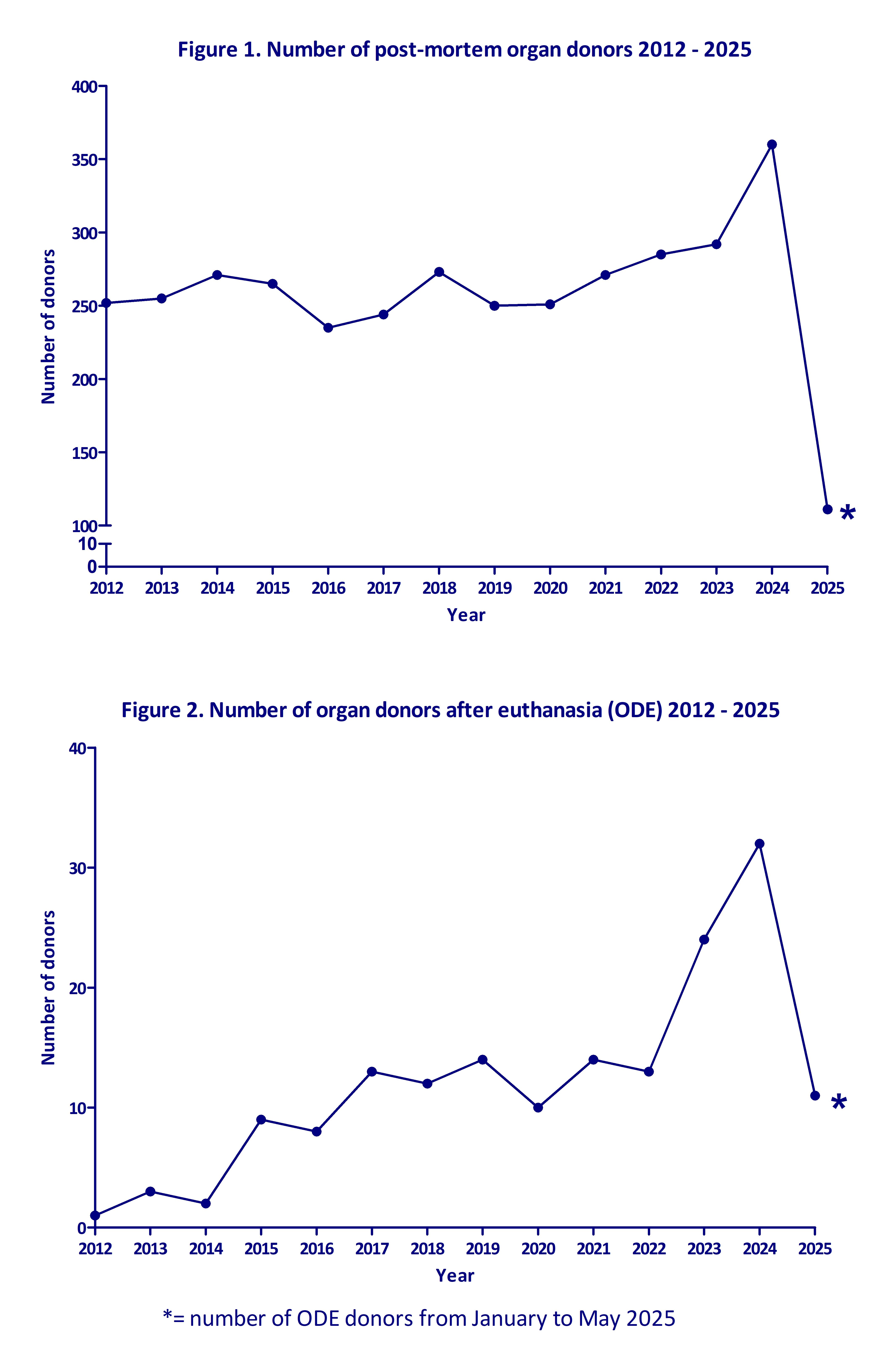 Conclusion: Since 2012, the number of ODE patients has gradually increased, with a more pronounced rise in 2023, 2024, and 2025. Although ODE patients represent a relatively small subset of the donor pool, they constitute an increasingly significant contribution to donor potential. Furthermore, since 2018, a shift has been observed in the underlying indications for euthanasia, from primarily somatic to psychiatric conditions.