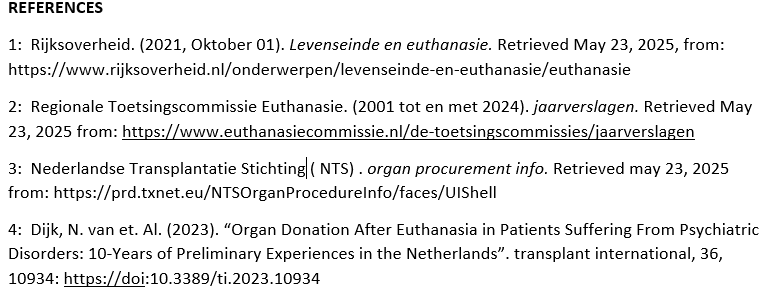 Introduction: Since the legalisation of euthanasia in the Netherlands in 2001, provided that the conditions of the Euthanasia Act1 are fulfilled, the procedure has been performed approximately 110,000 times2. Data from the Regional Euthanasia Review Committee shows an increase in euthanasia cases due to psychiatric suffering since 20192.