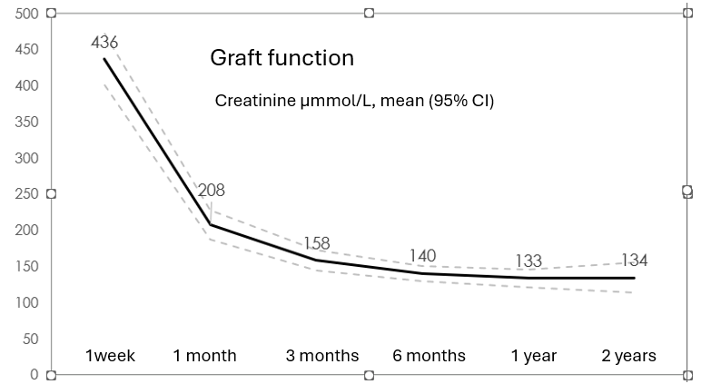 Graft function over a two-year period, expressed as mean (95% confidence interval, CI), is presented in Figure 2.