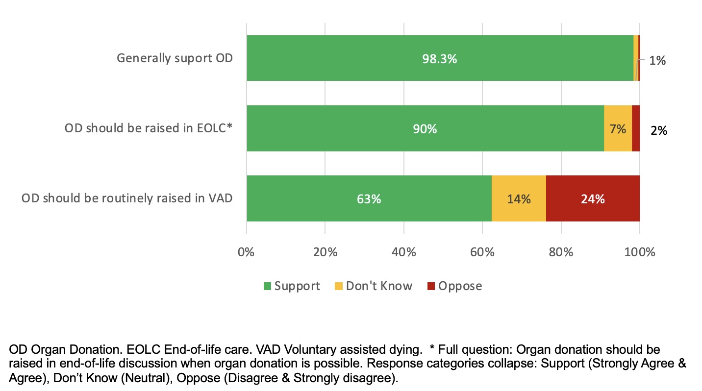Conclusion: These findings suggest that while there is significant support among Australian VAD clinicians for organ and tissue donation, major knowledge gaps and practical challenges remain. Addressing these through targeted education, clearer clinical guidance, and system-level support will be key to enabling ethical and effective donation practices in VAD settings.