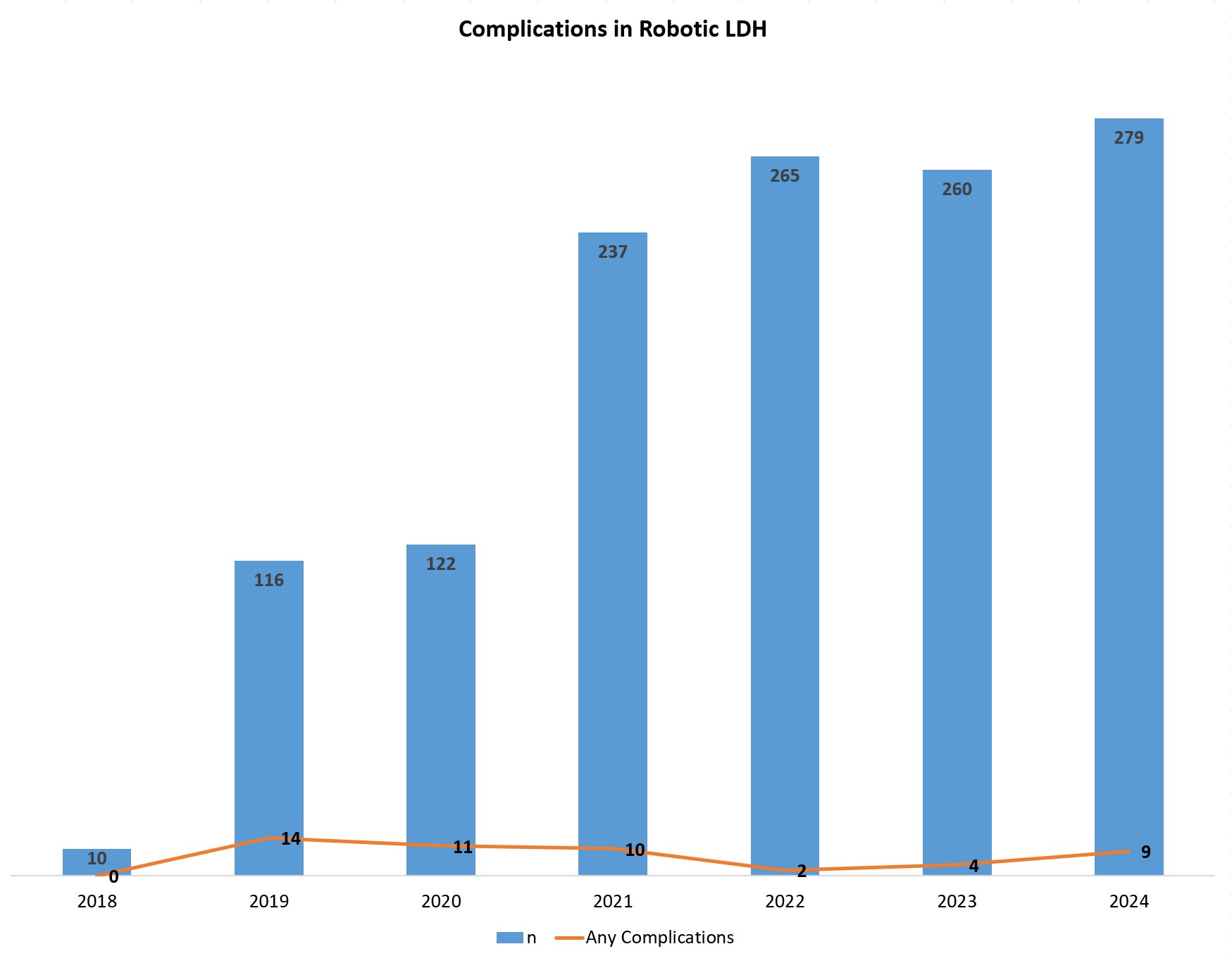 Figure 1 summarizes the results; Figure 2 depicts timeline of Robotic LDH complications.