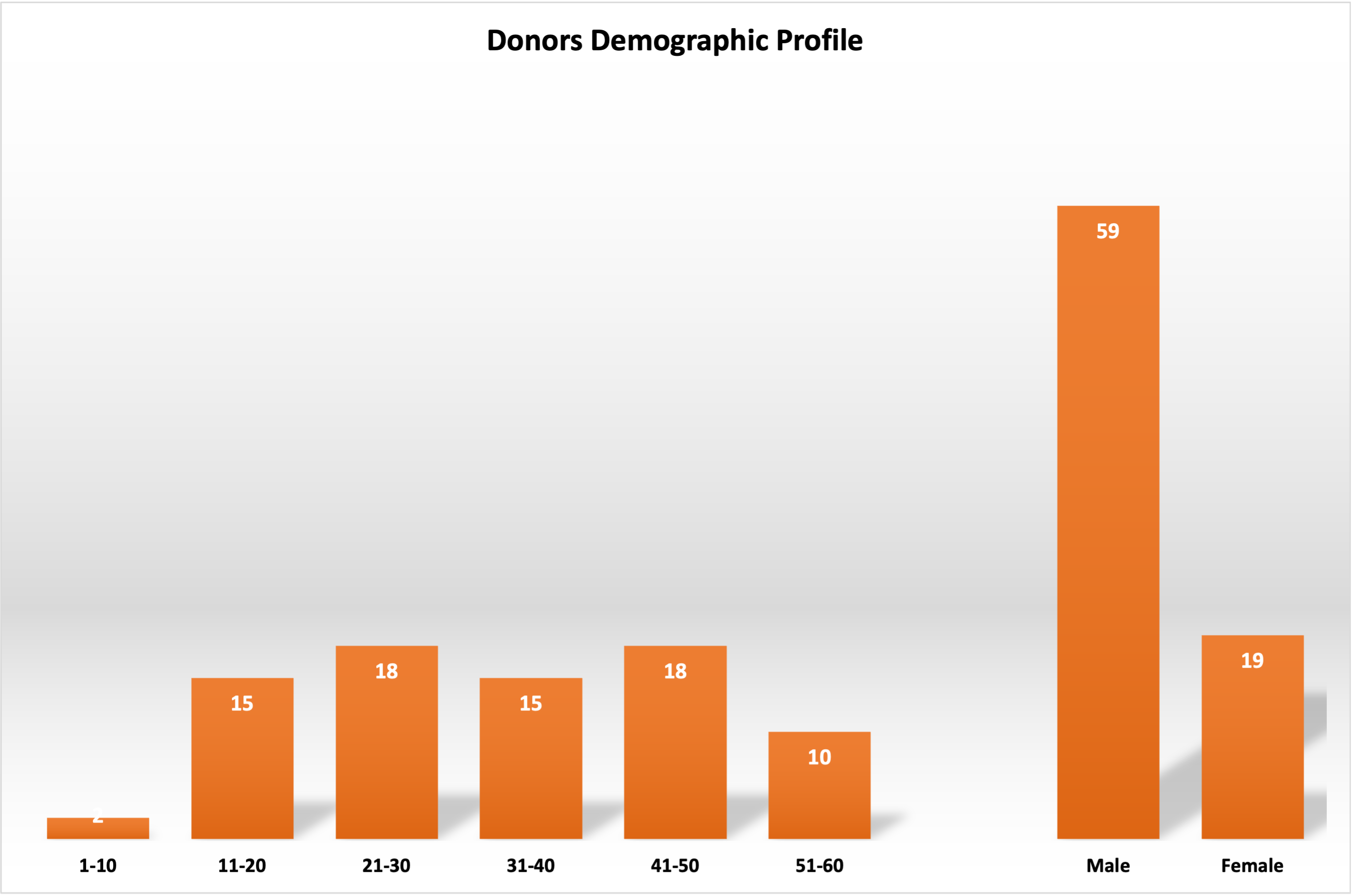 Results: A total of 154 kidney grafts were transplanted from 78 deceased donors over the eight years, averaging approximately 19 kidney transplants per year. The mean age of the donors was 33.79 years, ranging from 1 to 60 years. A substantial majority of the donors, 76% (n=59), were male.